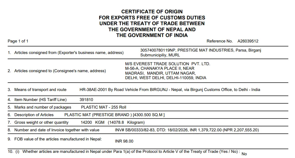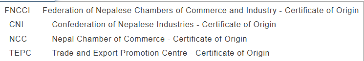 - SAFTA Certificate (South Asia)